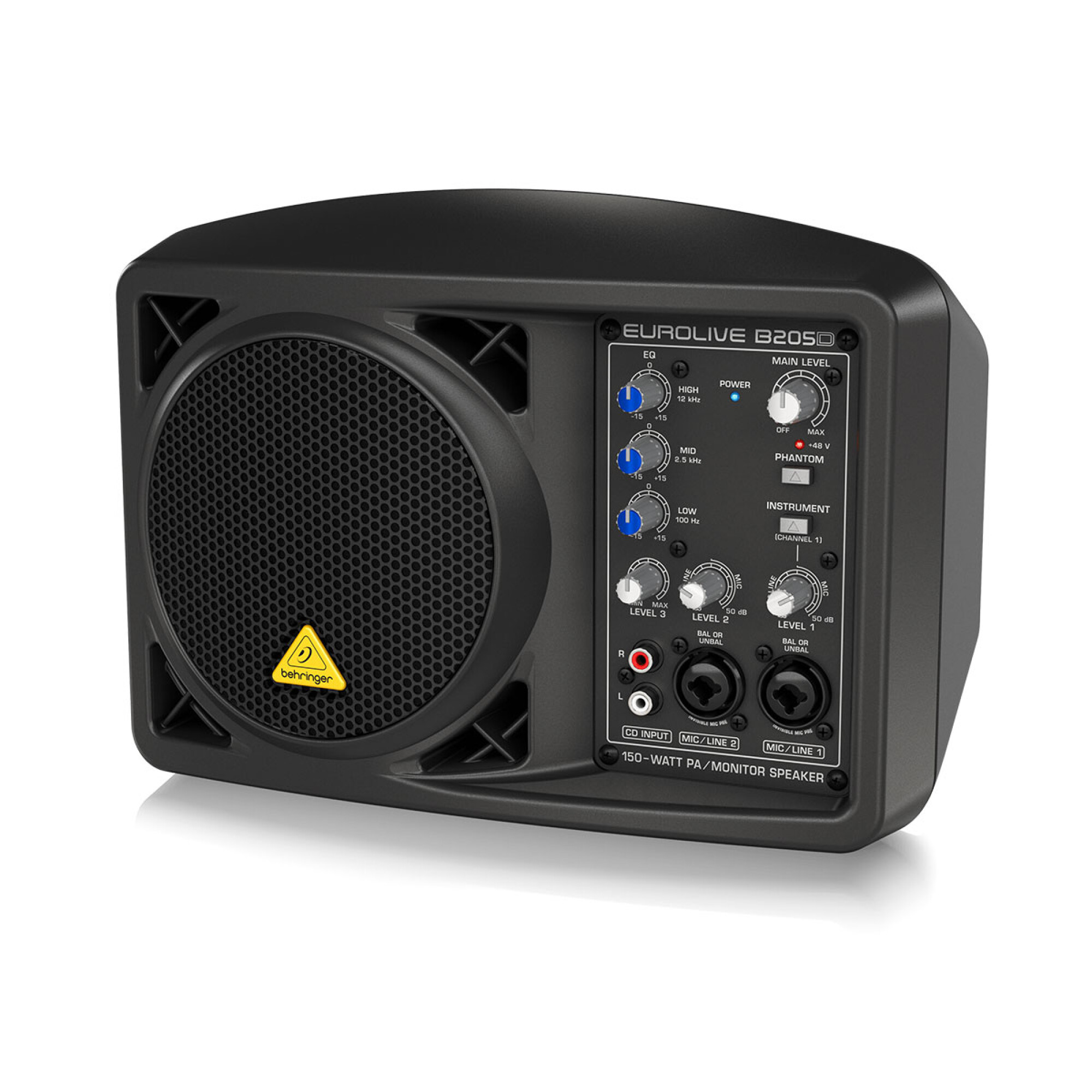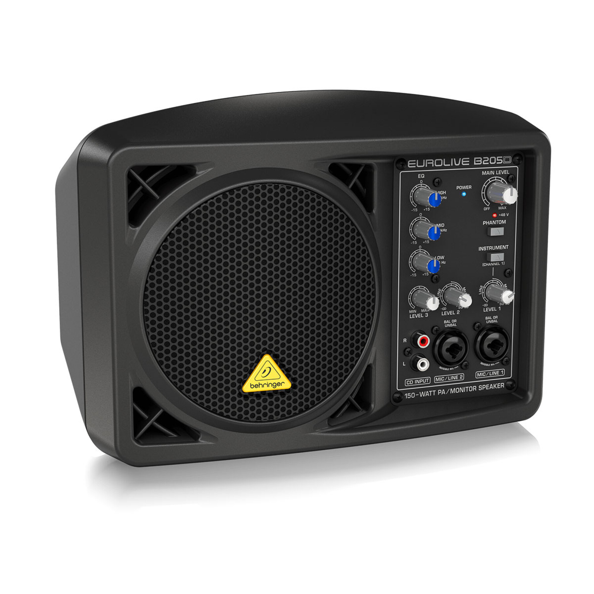 Revolucionaria tecnología de amplificación de clase D: increible potencia, impresionante rendimiento sónico y mínimo peso. Cabezal de rango completo y máxima calidad de 5.25" y fabricado en neodimio. Mesa de mezclas de 3 canales y mínimo nivel de ruidos con EQ de 3 bandas. 2 previos de micro "invisibles" con alimentación fantasma para micrófonos condensadores y 1 entrada pensada para instrumentos (no necesita cajas DI). Entrada estéreo específica para su uso con teclados, MP3, CD, etc. Componentes de la máxima calidad y una construcción extremadamente robusta que le aseguran una larga vida útil. Sistema de integración de soporte de micro que le permite usar la unidad con soportes standard y jirafas. Limitador integrado para el máximo control del sistema y protección de los altavoces. Conector ´through´ en XLR con interruptor micro/línea que permite el enlace de varios B205D. Fuente de alimentación de modo conmutable interna