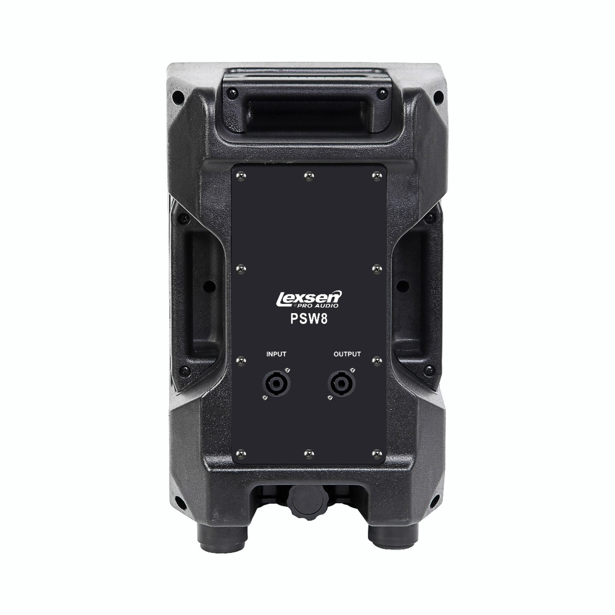 La Lexsen PSW8 es una caja acústica pasiva de 8" compacta y resistente, ideal para instalaciones pequeñas, refuerzos sonoros ligeros y aplicaciones portátiles. A diferencia de los modelos activos, no cuenta con amplificación interna ni controles de volumen o ecualización: requiere un amplificador externo para funcionar.