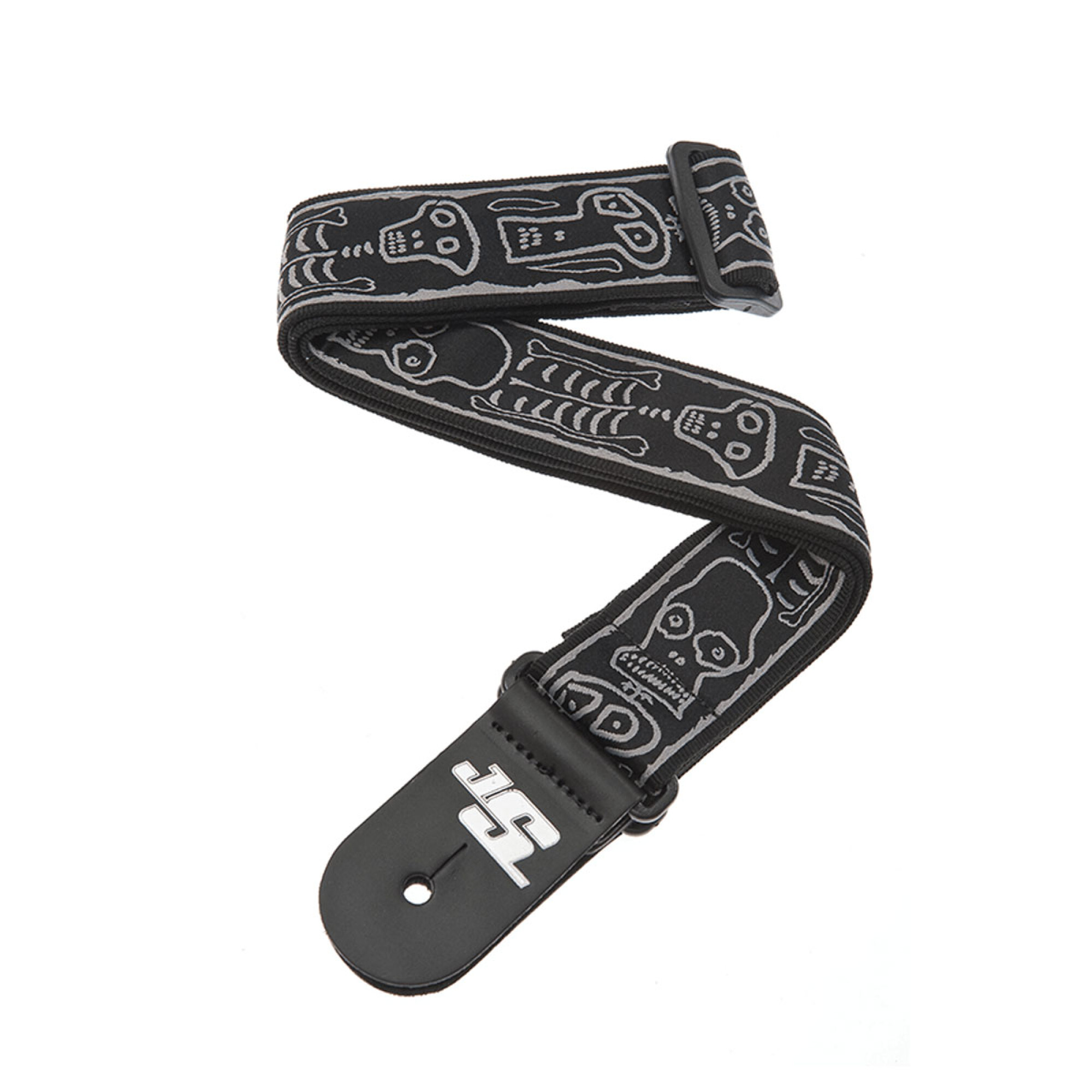 Correa de tela con firma JS (50mm) Spaceman con puntas de cuero y espacio para la pua.