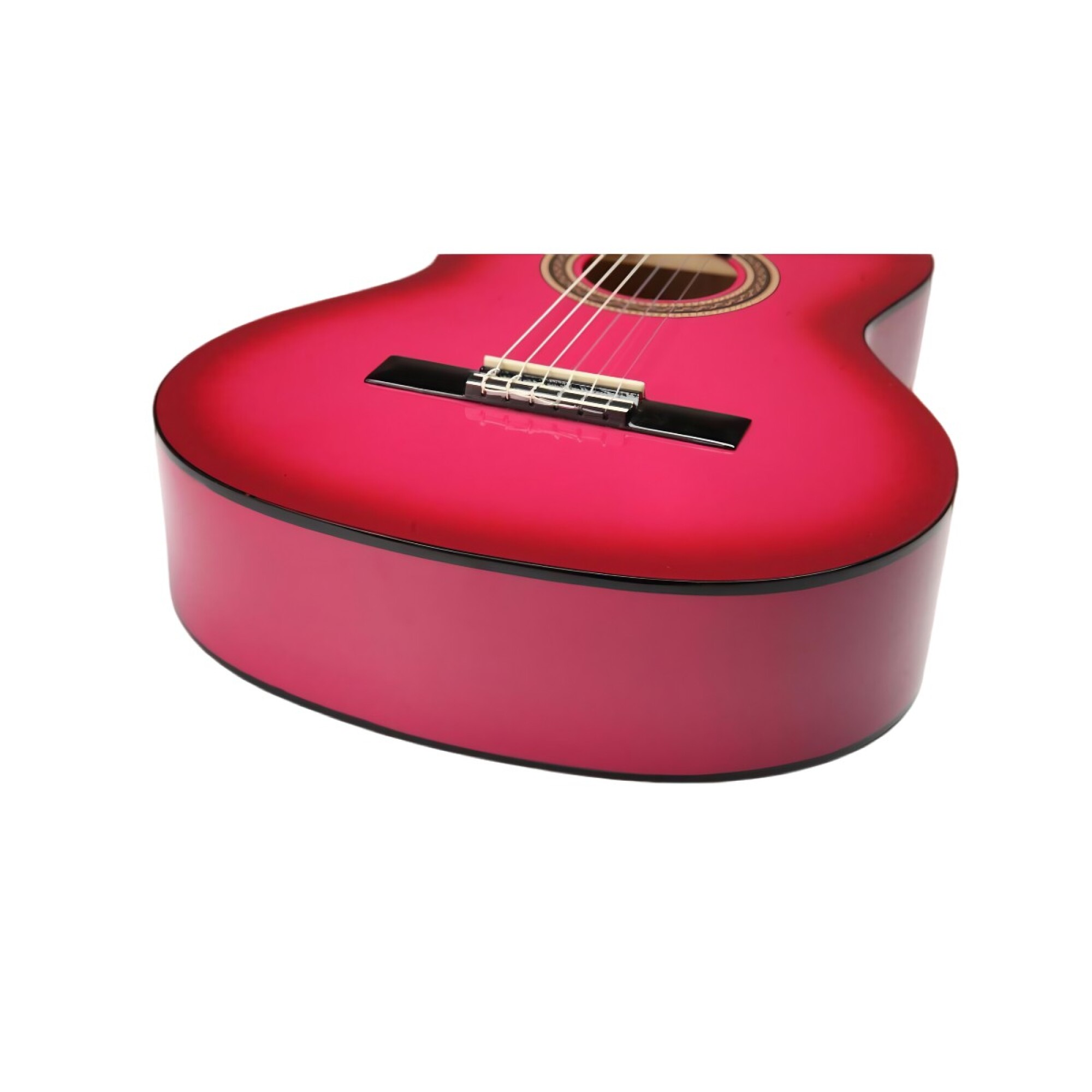 Ideal como primera guitarra clásica, la Serie 100 de Valencia combina características completas, sonido claro y precio accesible. Su escala permite tocar con técnica clásica auténtica, perfecta para desarrollar el estilo desde el inicio. Construida con tapa, fondo y aros de tilo, mástil de nato y diapasón de arce ebonizado, ofrece una voz resonante y estética llamativa con acabado gloss Pink Sunburst.