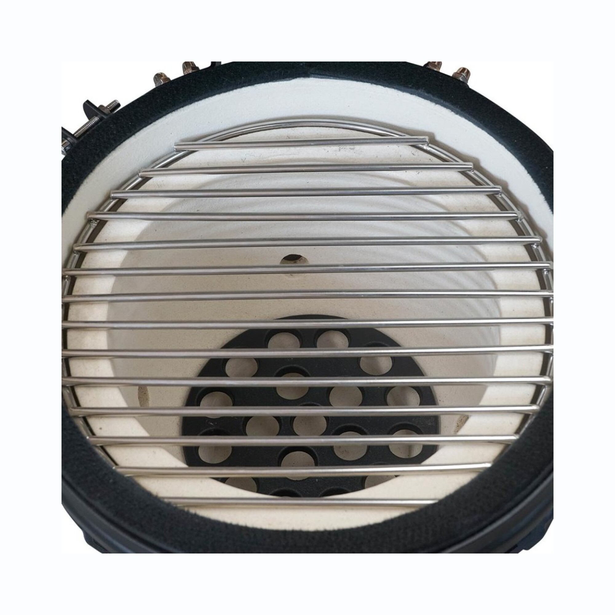 Disfrutá del auténtico sabor del carbón con la Kamado Fire King de 13". Compacta, versátil y con diseño elegante, es ideal para asados, ahumados y cocciones lentas. Su cuerpo de acero inoxidable con acabado acristalado mantiene el calor de forma uniforme, mientras que la rejilla de 27,2 cm ofrece espacio suficiente para tus preparaciones. Con estantes laterales de bambú y múltiples sistemas de seguridad, combina practicidad, estilo y máxima seguridad en un solo equipo.