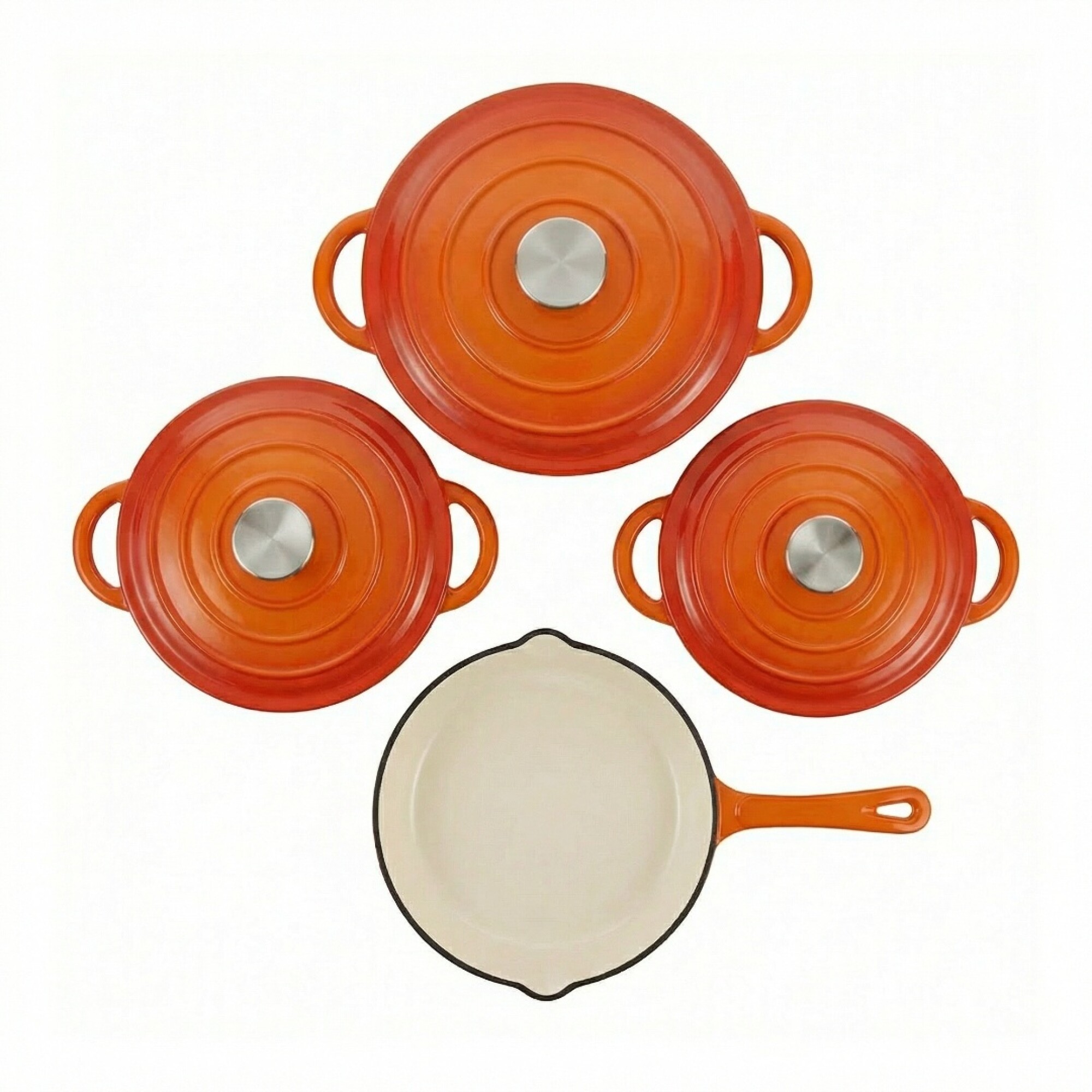 Set de Ollas de Hierro Fundido Esmaltado Fire King 7 Piezas - Naranja Vibrante